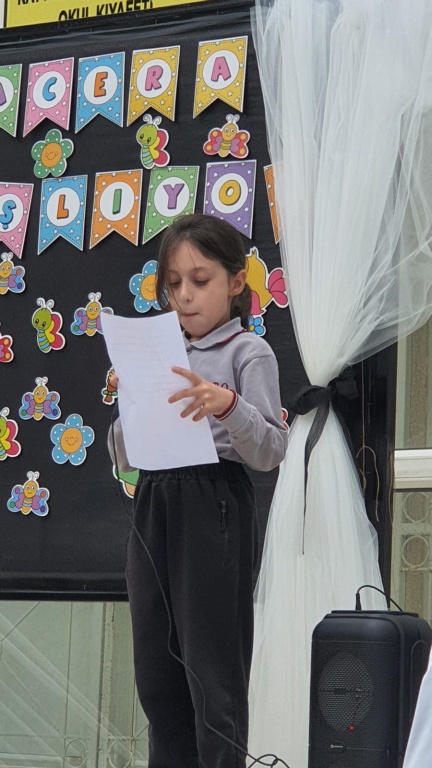 Okulumuzda İlköğretim Haftası 18.09.2025 tarihinde kutlandı. 1. sınıf öğretmenimiz Zeynep SARI günün anlam ve önemini anlatan konuşmayı yaptı. Öğrencilerimizin okuduğu şiirlerin ardından 1. sınıf öğrencilerimiz müzikli gösterilerini sundular. 2. sınıf öğrencileri YEŞİL VATAN temalı şarkı söylediler. Program 2. sınıf öğrencilerinin 1. sınıf öğrencierine Hoş Geldiniz hediyesi vermesiyle sona erdi.